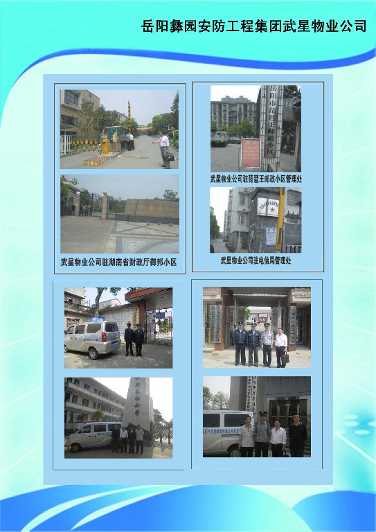 岳陽(yáng)武星物業(yè)管理有限公司繼岳陽(yáng)市武星保安公司于2012年2月成立,武星保安公司是經(jīng)省公安廳批準成立的民營(yíng)保安公司,為滿(mǎn)足廣大客戶(hù)的迫切要求,公司能為客戶(hù)提供保安、物業(yè)整體服務(wù)。武星物業(yè)公司技術(shù)力量雄厚,有電梯維修工程師、園林綠化師、水電安裝工程師、消防等專(zhuān)業(yè)技術(shù)人才。為了更好地服務(wù)社會(huì )、培育特種人才,公司與岳陽(yáng)市巴陵職業(yè)技術(shù)學(xué)校聯(lián)合辦學(xué),開(kāi)設了保鏢保安武術(shù)散打班、物業(yè)管理班、園林綠化技術(shù)班、水電維修班、禮儀班,現有專(zhuān)業(yè)學(xué)員幾百名。公司為各黨政機關(guān)、社會(huì )團體、廠(chǎng)礦企事業(yè)單位、金融機構、房地產(chǎn)開(kāi)發(fā)商居民住宅、賓館、學(xué)校、娛樂(lè )場(chǎng)所等提供人力資源和技術(shù)防范服務(wù)。目前公司有幾十家大客戶(hù),公司優(yōu)質(zhì)的服務(wù)得到了客戶(hù)的好評?,F經(jīng)公安廳市公安局批準成立了保衛科、督查應急大隊,為客戶(hù)不定時(shí)的服務(wù)和回訪(fǎng),公司有一批業(yè)務(wù)精、能力強的管理人才,為客戶(hù)提供高質(zhì)量的服務(wù)。武星保安物業(yè),保您家安樂(lè )業(yè)。